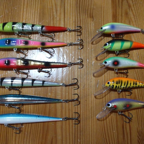 Tässä paketissa Jenna vaappujen kielilevyllisiä 140mm rungolla olevia vaappuja speciaali-väreissä. Mukana mm punalohi väri. Jennojen välissä Karikko.