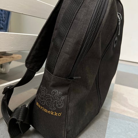 Marimekko merkkinen kokoontaitettava olkalaukku/reppu. Väri tummansininen. Reissussa todella kätevä. Vain nouto.