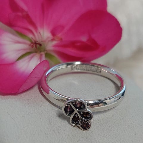 Spinning jewelry 925 hopeinen sormus kukilla. Koko 17.