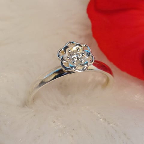 - kivi: kukan keskellä pieni kirkas zirkonia kivi