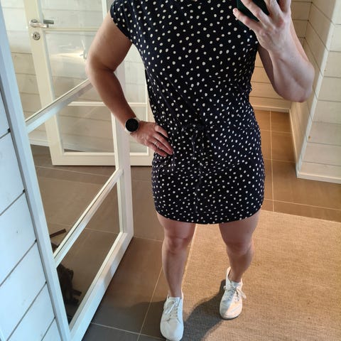 Ihana polka dot mekko vyöllä, koko M - L, puuvilla, vetoketju takana.