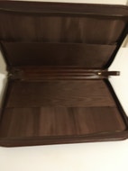 Ruskea asiakirjasalkku vetoketjulla, 40 x 26 cm.
