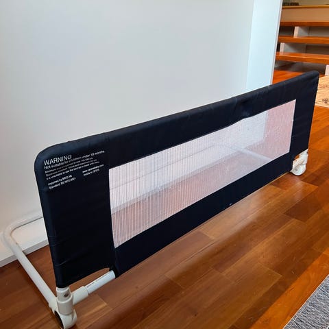 Estää lapsen tippumisen sängystä. Taittuu kasaan nappia painamalla. Merkki: Carena