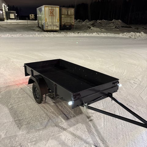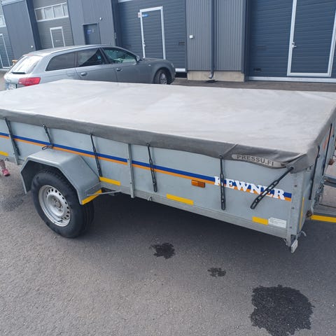 Hydraulisella kipillä varustettu peräkärry 1000kg kantavuudella ja 2000kg järeällä sylinterillä.