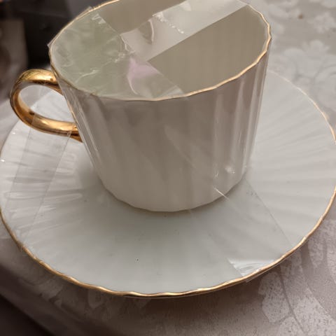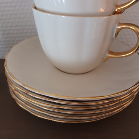 Arabia kultakorva kahvikupit ja tarjoilulautanen