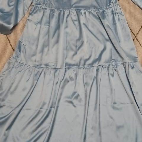 Myytävänä itseommeltu vuorellinen sininen mekko 10€.