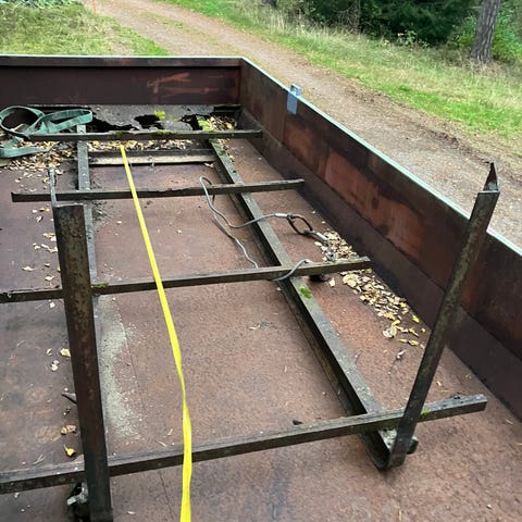 Noin 5 metriä pitkät kiskot olleet kontin alla .nyt uuteen kotiin vaikka saunan ja paljun alle