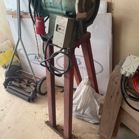 Toimiva pieni smirgeli. Kivet hyvässä kunnossa. Imukupit koneen pohjassa, joten tasopinnalla pitäisi pysyä?