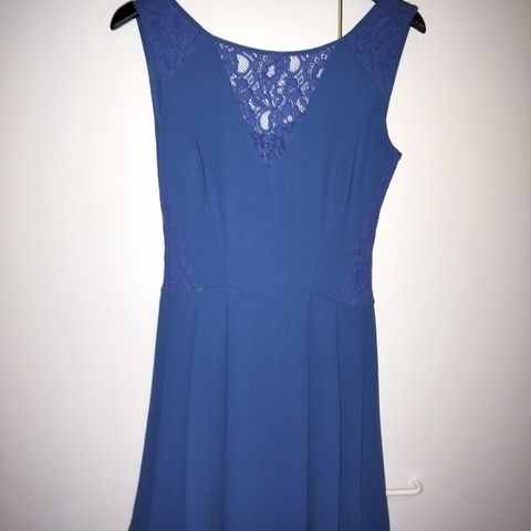Mekko on valmistettu kevyestä materiaalista ja siinä on kauniit pitsiyksityiskohdat. Olkaimet säädettävissä. Pituus n 113cm riippuen miten laittaa olkaimet. Itse olen 166cm ja mekko asettuu nilkkojen yläpuolelle.