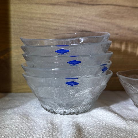 Kauniin harmaasävyiset Nuutajärven/Kai Frankin kaksi virheetöntä kulhoa, pyöreä ja kaatonokallinen sekä 7 kpl asetteja (joissa parissa pieni nirhauma reunassa), hp kulhot 18+20+asetit , kaikki yht ale 35 e.