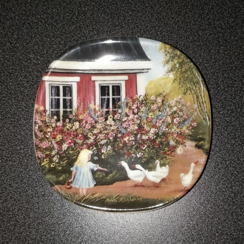 Arabia Finland Kesäinen Hetki lautanen on valmistettu kestävästä keramiikasta. Lautasessa on kaunis kesäinen kuva, jossa on tyttö ja hanhia talon edustalla. Tämä lautanen sopii erinomaisesti koriste-esineeksi.