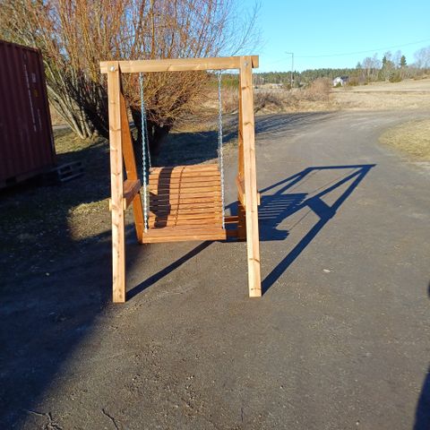 myydään puuha merkkinen turva keinu pihalle. Kumilautaistuin, musta, pitkät ketjut.