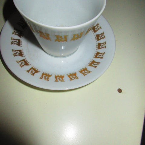 Korkeus n. 6 cm ja leveys n. 5,5 cm. Kuppiin kuuluu myös pieni tassi. Sopii nykypäivänä hyvin esimerkiksi espressokupiksi.