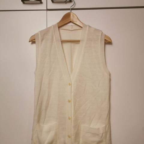 Itse tehty villapaita. Väreinä lämpimiä ruskean, oranssin, keltaisen ja kullan sävyjä. Kainalo-kainalo n. 42 cm, ja olka-helma n. 62 cm.