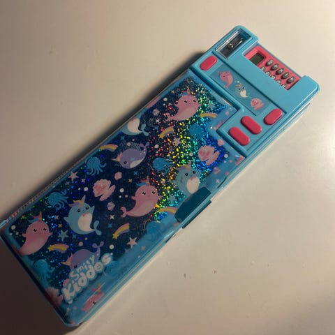 Vähän käytetty monitoimipenaali. Penaalissa on napilla kääntyvä teroitin, kaksi isompaa lokeroa kynille ja yksi pienempi lokero muille pikkutavaroille. Toisessa lokerossa on vähän tummentumaa, jota ei ole yritetty puhdistaa (ei näy penaalin ulkopuolelle). Muuten todella hyvässä kunnossa.