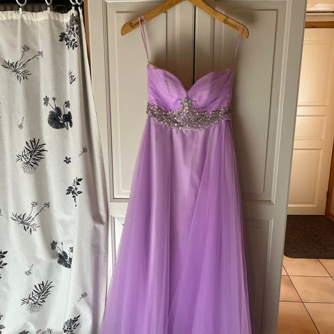 Myydään Zazabellasta ostettu siniturkoosi mekko ja valkoinen vannealushame settinä. Mekko kokoa 34, mutta menee nyörityksen ansiosta kokoa 34-38 käyttäville ainakin. Kuvassa 170cm pituisella korkeat korot jalassa, tansseissa oli matalemmat korot jalassa. Vannealushame noin kokoa S-M. Mekossa irroitettava selkäpaneeli eli sen voi ottaa nyörien alta helposti pois niin tahtoessaan. Sekä mekko että alushame hyvässä kunnossa, mekon helmassa joku yksittäinen haalea tahra. Ryppyinen säilytyksestä. Strassit ym. blingit pysyneet hyvin kiinni eikä omaan silmään näytä yhtäkään puuttuvan. Sovittamaan saa tulla 😊 Mieluiten nouto.