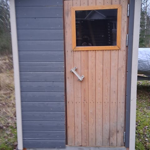 Kirvesmiehen tekemä käyttövalmis puucee. Kekkilän 50 litran kuivakäymälällä.
