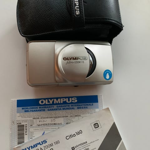 Olympuksen mainio kompakti 38-110mm zoomilla varustettu kompaktikamera. Sisään on ladattu Fuji 200 filmi, ja kamera on laukaistu kerran ja testattu näin toimivaksi.