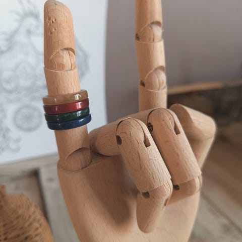 Erilaisia sormuksia
