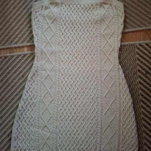 Naisten valkoinen villamekko pienellä halkiolla.
