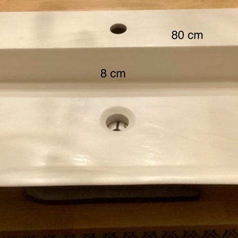 Käyttämätön valumarmoriallas ja kaappi kylpyhuoneeseen