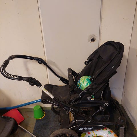Rattaat ovat hyvässä kunnossa työntötangon nahkaosat kuluneet
