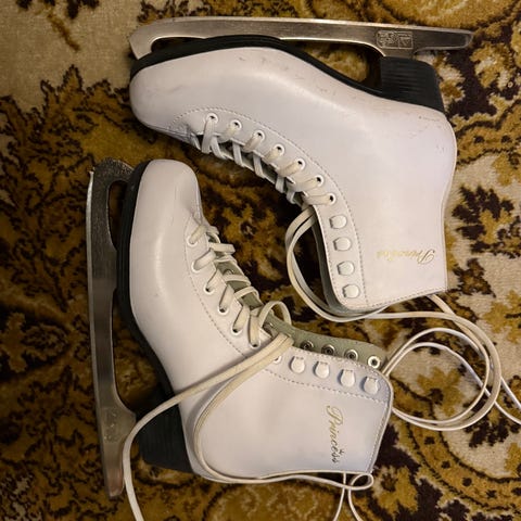 Myydään tyttöjen Princess kaunoluistimet, pohjassa nro 6?, pohjan pituus noin 24.6cm, sisämitta noin 23.5cm, voisi olla kengänkoossa jotain 33-36, kenties teroitus ajankohtainen, kannattaa kokeilla sopivuus ennen ostoa! Nouto ja käteinen Helsinki, Vuosaari.