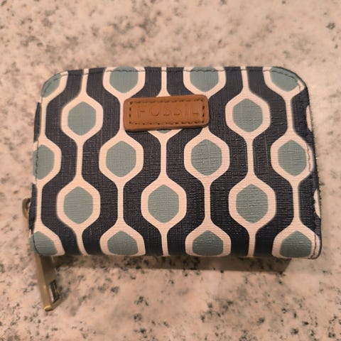 Upea Fossil-brändin iso lompakko. Vanhaa hyvää tuotantoa. Käyttämätön ja kookas. Paljon korttipaikkoja. Seteleille ja kolikoille tilaa. Hienon ulkoasun kruunaa Fossilin tavaramerkki avain sekä riipus pallukoineen. Koko noin 10×19. 63 e.