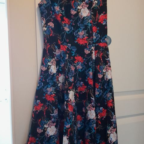 Kahdesti käytetty Hearts & Roses kellomekko. Koko M/40. Sivussa vetoketju, edessä avattavat napit. Pienet hihat, "täyskellohelma" joka pyörähtää kauniisti.
