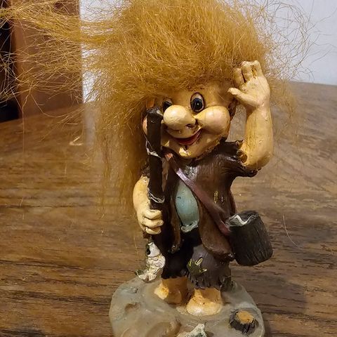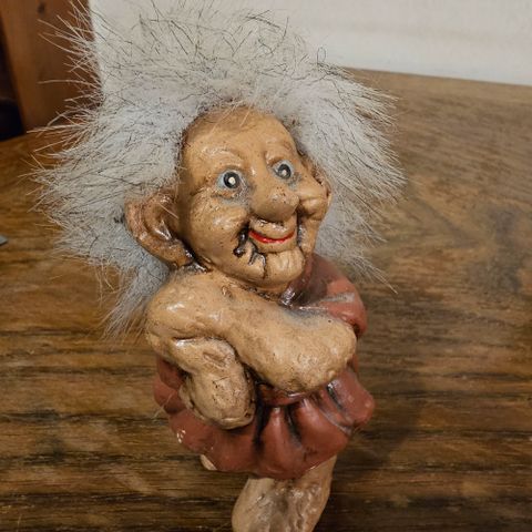 Peikkofiguuri kirja kainalossa. Korkeus 10 cm. Trollien keräilijälle.