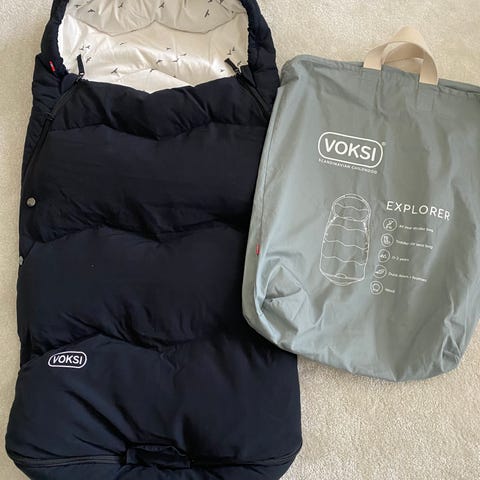 Myydään VOKSI City -talvilämpöpussi rattaisiin, säilytyskassissa, ohjeineen ja lisäpaloineen.