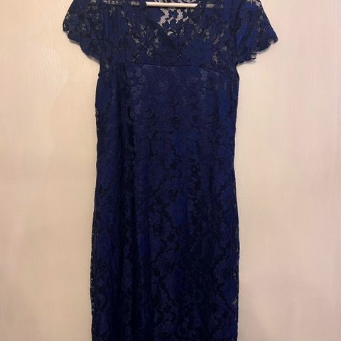 Siisti, ajaton, vähän käytetty O.I.S.-merkin pitsinen petroolinsininen juhlamekko. 3/4-hihat.