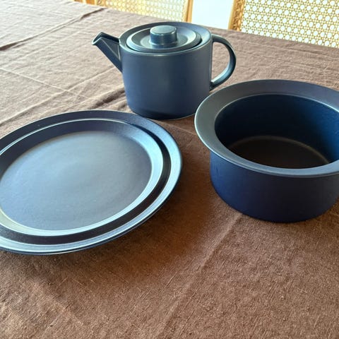 Tässä kohteessa myydään Heikki Orvolan Blues- sarjan kahvipannu. Tämä Orvolan Arabille suunnitteleman Moreeni-mallin sininen kahvipannu oli tuotannossa 1992-1997.