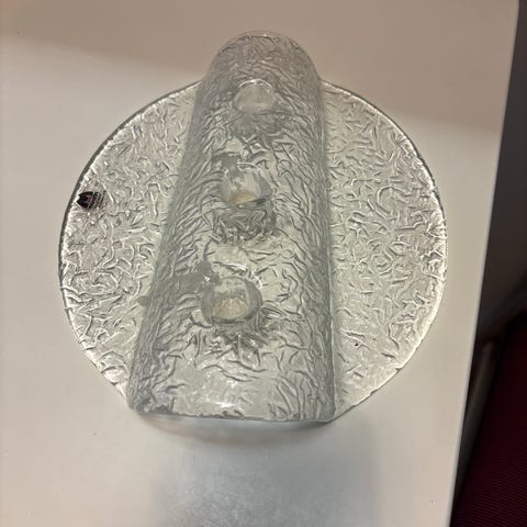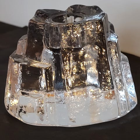 Muurla kynttilänjalka neljälle kynttilälle. Muistuttaa jäävuorta. Pituus 24,5cm, korkeus 4-7cm ja leveys 5-6cm. Tarra pohjassa. Kunto täysin moitteeton. Nouto Saimaanharjulta 10km Lappeenrannasta. Voin postittaa mutta postikulut sinulle