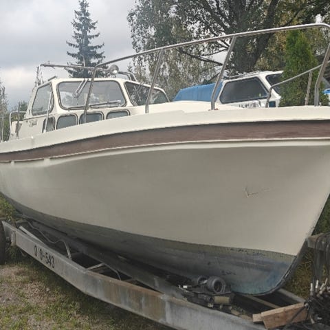 Iso veneaihio kunnostettavaksi vesiliikennekäyttöön tai mökiksi. Kuidutettu puurunko. Vene on riisuttu tekniikasta ja ohjauskoppi on rakennettu uudestaan. Veneessä ei moottoria eikä sellainen kuulu kauppaan. Runko vesitiivis.