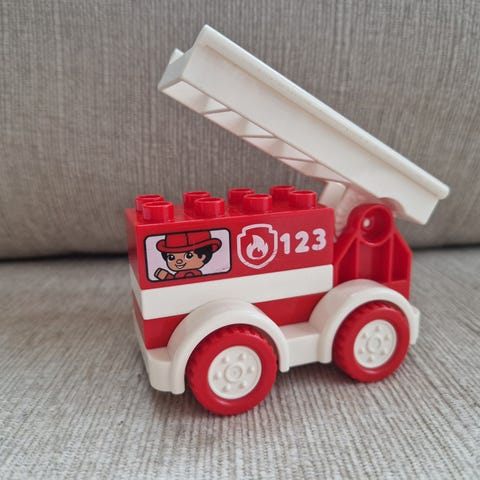 Vähän käytetty Duplo paloauto. Paloautossa sireeniin tulee painettaessa valo ja ääni. Ohje ja laatikko halutessa mukaan.