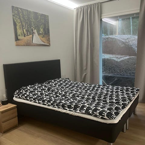 Mukana myydään myös IKEAN pussijousitettu patja, Hamarvik merkkinen, kiinteä.
