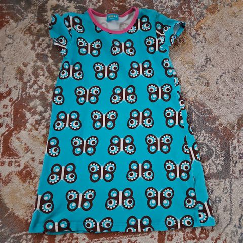 Tosi vähän käytetty mekko. Toki pientä haalistumaa tummassa värissä saattaa olla. Vähän paksumpi siisti kangas. Kissatalous. Menee vielä koossa 104 meillä.