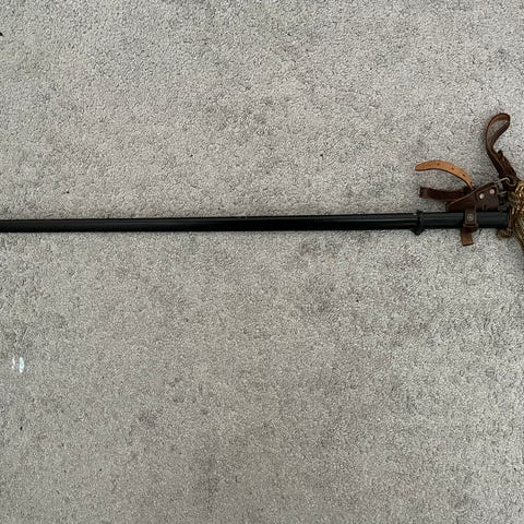 Harkitaan myyntiä, tarjoa! Miekka ok todennäköisesti show-miekka, mutta voi olla oikeakin nupissa ruuvi, mitä käytettiin myös osassa oikeista miekoista (17th-18th century). Signerausta en löytänyt, mutta kaikkia oikeitakaan miekkoja ei signerattu syystä tai toisesta..