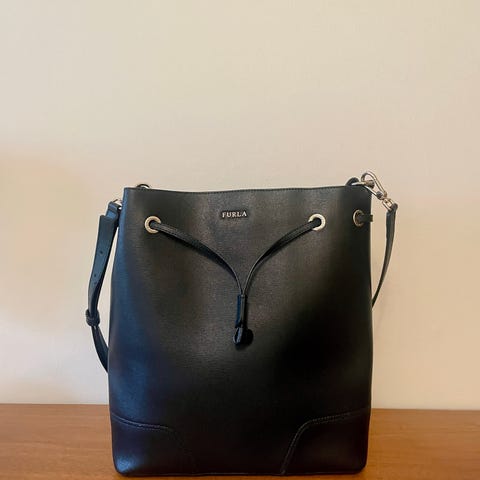 Käytössä ollut, mutta hyvin pidetty ja loistokunnossa oleva nahkainen Furlan Saffiano laukku. Sopii moneen käyttöön, mm. tietokonelaukuksi. Pysyy hyvin muodossaan eikä kulu herkästi. Laukun pohjassa pieni naarmu, näkyy kuvassa.