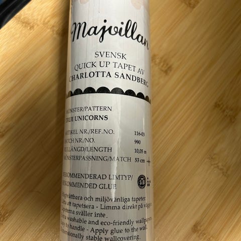 Kuvan mukaista Majvillan tapettia yksi rulla jäi yli
