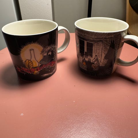 2kpl uusia muumimukeja. Laatikko tulee mukaan. Mukeissa tarrat paikallaan. Käyttämättömiä.