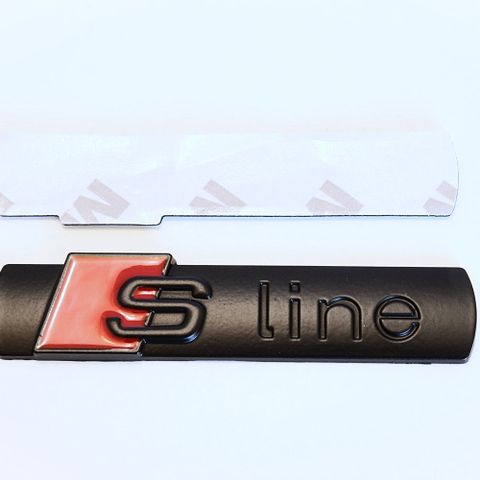 Audi S-Line merkki takakontin luukkuun, lokasuojaan tai helmaan. Kaksipuoli -teipillä