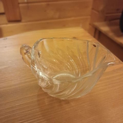 Riihimäen lasitehtaan jaloilla seisova ONERVA kermakko / kaadin / kannu, puristelasia, korkeus 8/ 9 cm. Yhdessä jalassa pienet kolhut ja kahvassa hiushalkeama.