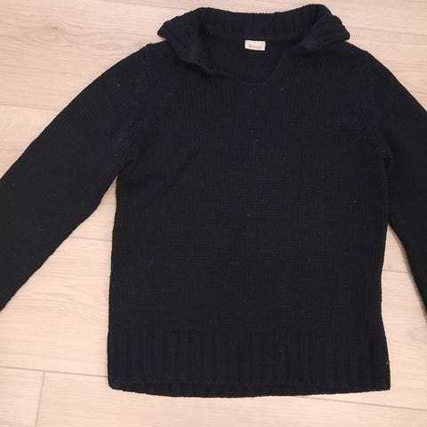 Musta pitkänmallinen tuubitoppi. Koko: S. Merkki: Madonna. Edessä "koristetimantteja" ja vetoketju. Yläosassa kuminauha.