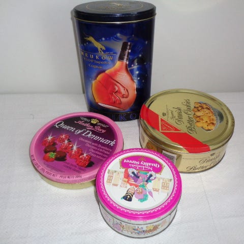 Isohko säilytys rasia. Kuvassa näkyy, että siel oli 900 g. keksiä.