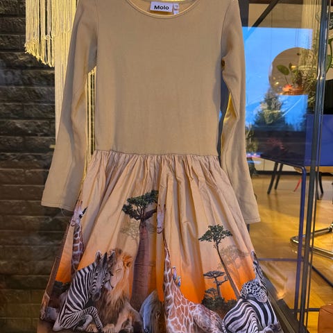 Raitamekko, jossa pitkät hihat. Väreinä mustaa, valkoista ja vaalean ruskeaa. Merkki: Molo (Chia). Koko 134/140. 100% luomupuuvillaa.