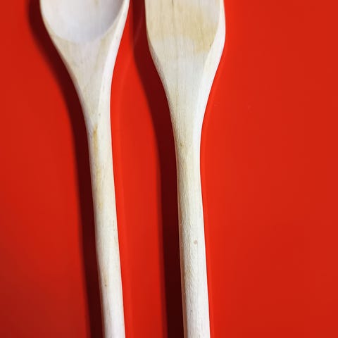 Telineessä on kolme reikää, joihin voi asettaa puisia tai koristeellisia lusikoita.