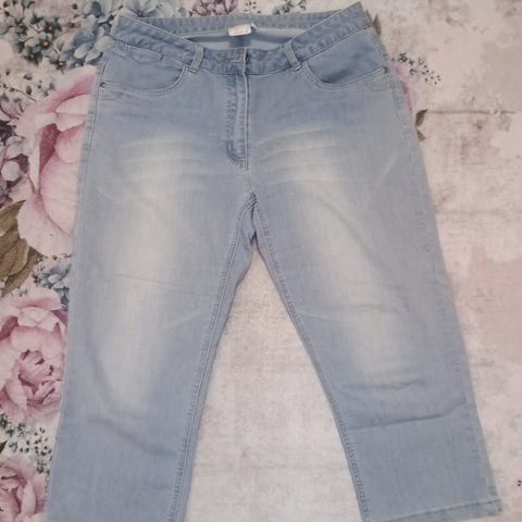 Myyn vaaleansiniset, muutaman kerran käytetyt, Gerry Weber -merkkiset farkkucaprit. Koko: 42. Joustavaa kangasta. Vyötärönympärys 95 cm.