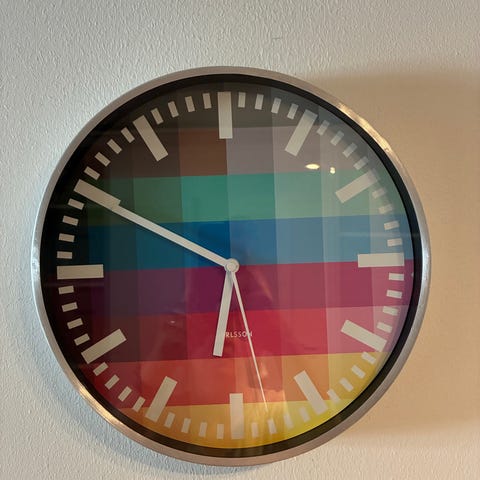 Myydään hieno seinäkello Karlsson, lasia ja metallia. Leveys 40cm. Nouto